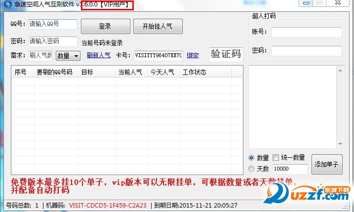2016急速空间人气互刷vip破解版已经破解了vip限制,用户可以免费使用,帮助您快速刷qq空间人气,需要的朋友可以来下载!