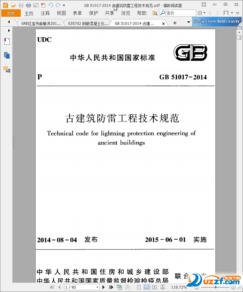 这是我们东坡小编整理出来的一篇GB51017-2014古建筑防雷设计规范,该图集是2015-08-04发布2015-06-01开始实施,内容完整,有需要这篇古建筑防雷图集的朋友们快来我们这里免费的下载使用吧!