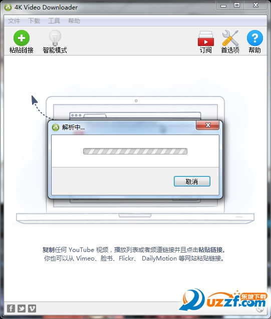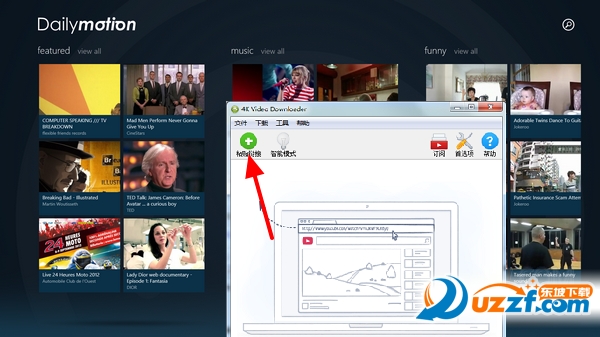 下载并安装Dailymotion视频下载器后,这是软件的窗口界面,中文的,使用也很简单