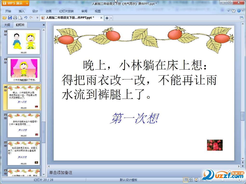 这是一篇人教版小学二年级下册语文充气雨衣ppt课件,整篇课件共有28页内容制作精美,需要该课文课件的老师们可以来我们东坡免费的下载这篇充气雨衣课件!