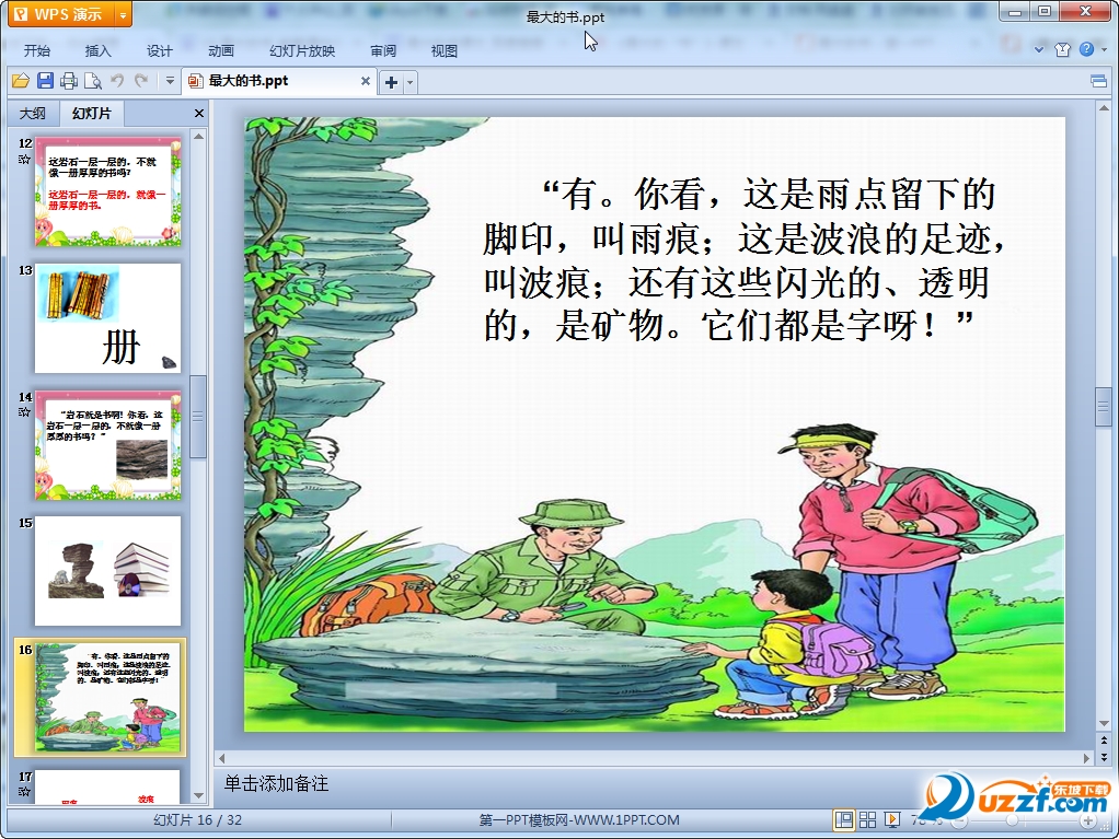 “岩石就是书啊!你看,这岩石一层一层的,不就像一册厚厚的书吗?”