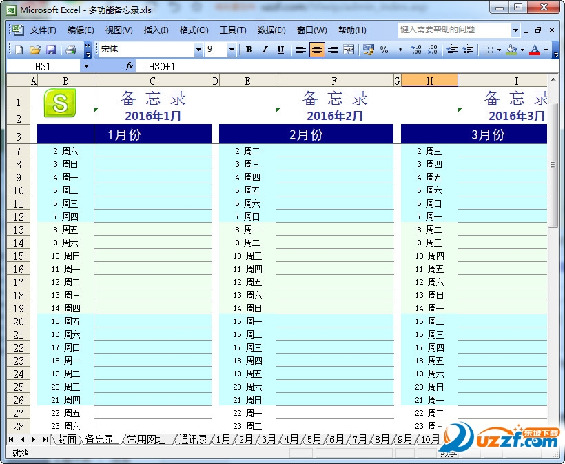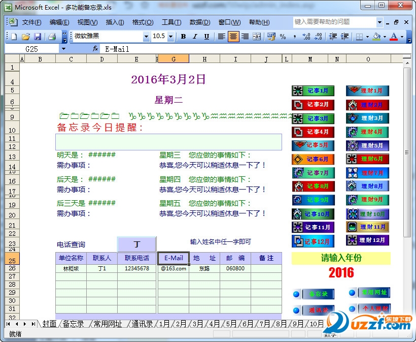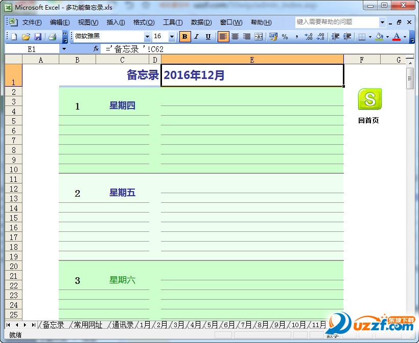 今天东坡小编为大家带来了一份完整的2016多功能备忘录表格模板,你打开后,会自动调整成当地最新时间哦,非常的准确、实用。功能也很齐全,你自己也可以随意地进行添加、删减。欢迎有需要的朋友前来东坡下载使用。