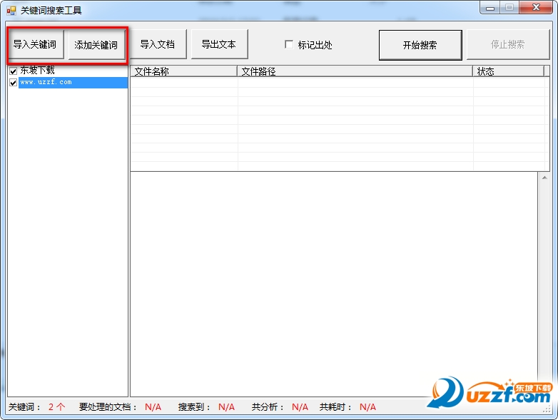 1、东坡下载软件后解压,运行“exe”文件,选择导入关键词或者添加关键词。