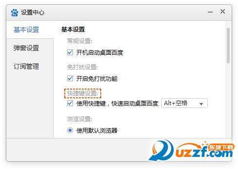 使用快捷键可以唤起/隐藏桌面搜索框,默认快捷键为Alt+空格,当然,如果与您当前的快捷键设置存在冲突,桌面百度提供其他快捷键选项。