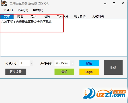 4.可按分类生成:包括文本、短信、网址、名片、邮件、WIFI、电话。