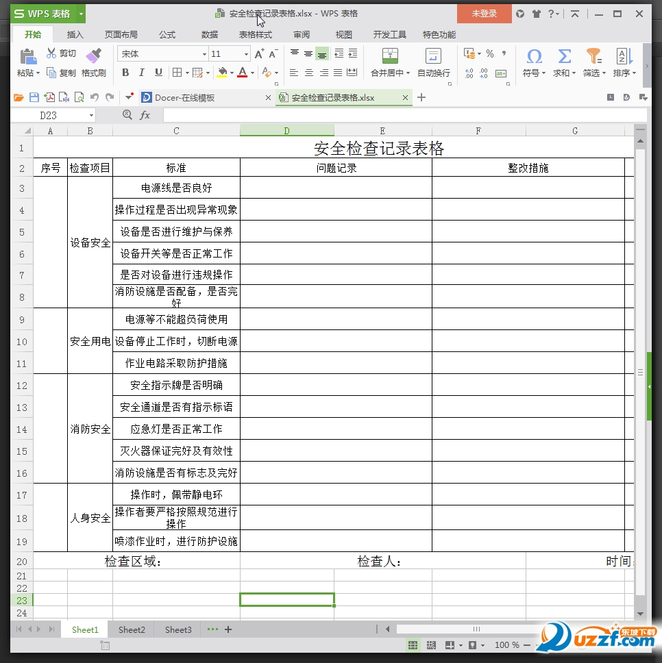 安全检查记录表格内容预览