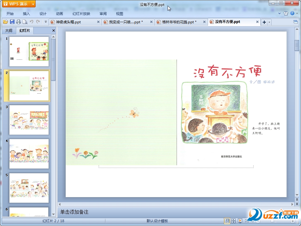 8. PPT7 展示故事大书的封面,介绍书名----没有不方便。