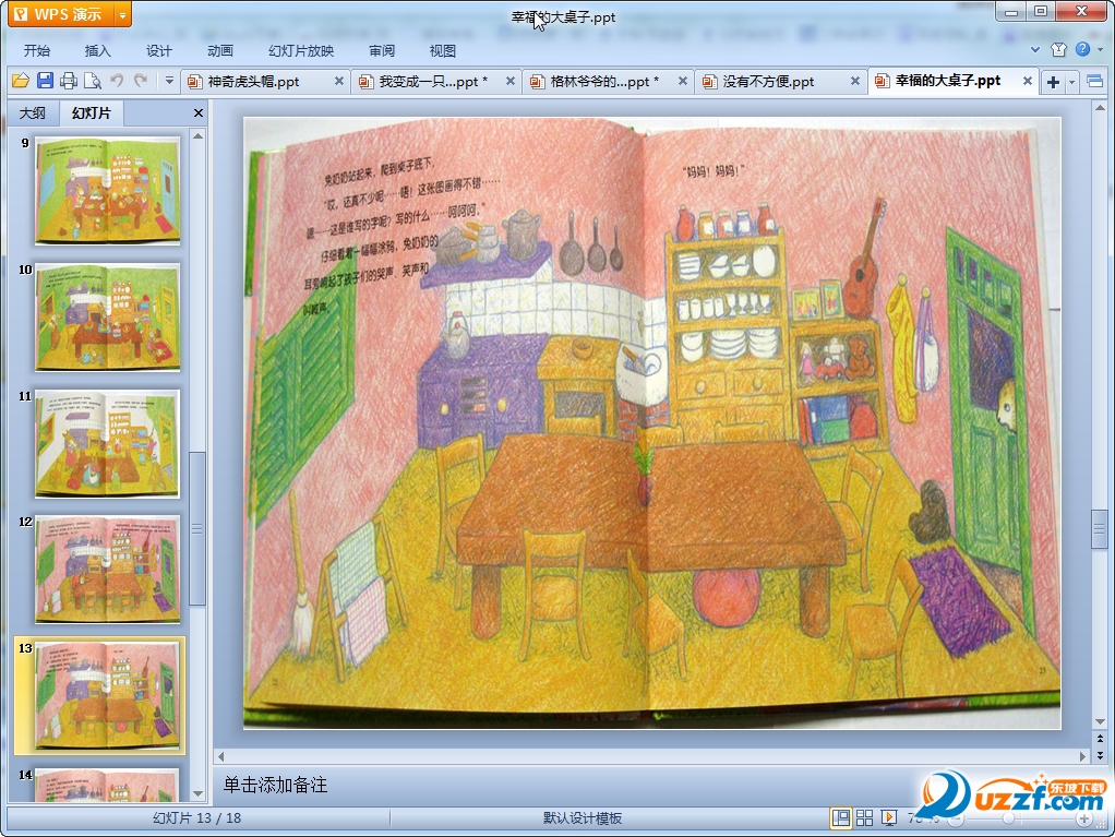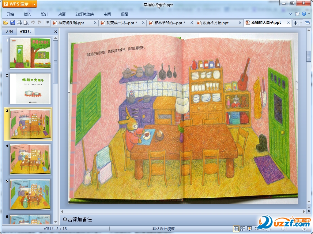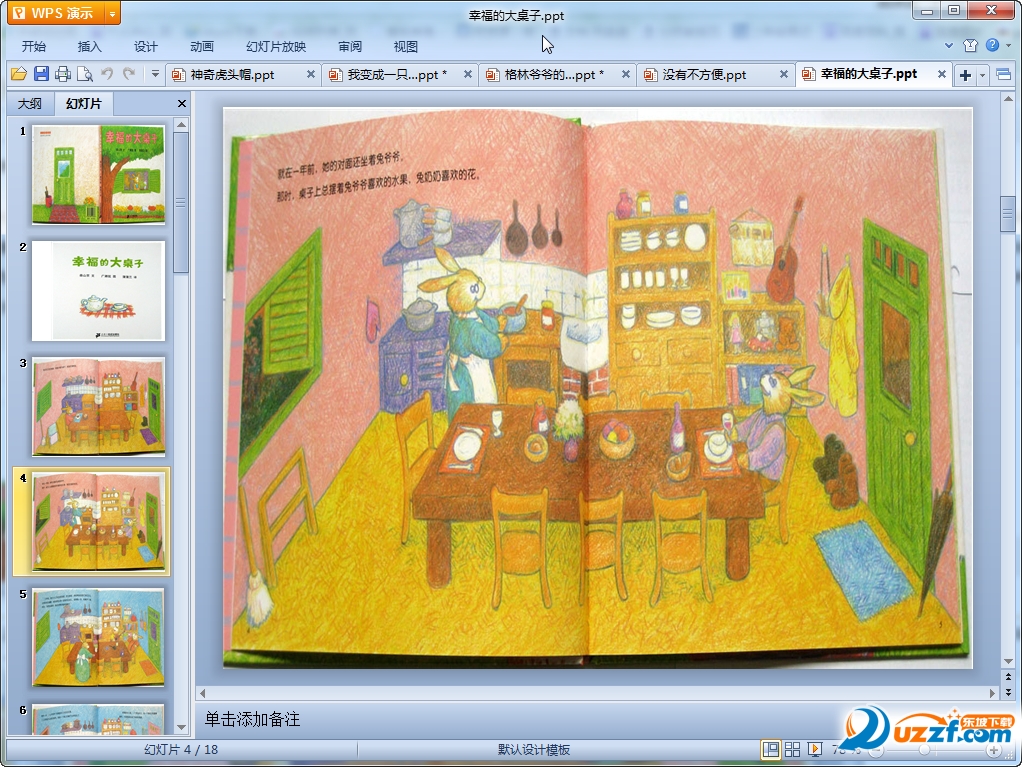 幸福的大桌子绘本里简单有趣的故事情节,在讲故事的同时给孩子们灌输一种家庭和睦温暖的感觉,非常适合儿童们阅读的一本绘本故事,有需要的可以来我们东坡免费的下载!