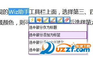 在您阅读文档的时候,在文档内选中一些文字,就会出现Wiz助手工具栏,如下图: