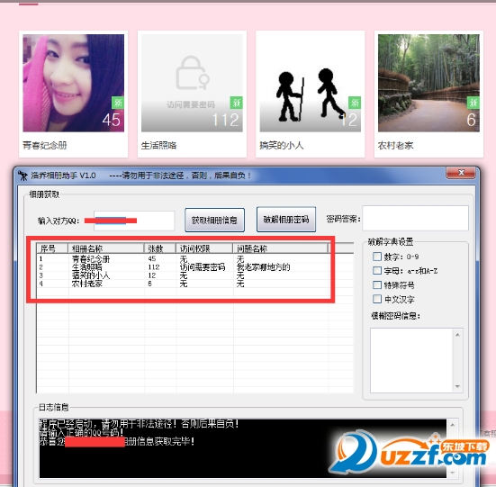 浩乔相册助手是一款相当专业的qq相册密码破解器。能帮助你更快的破解好友QQ空间密码。