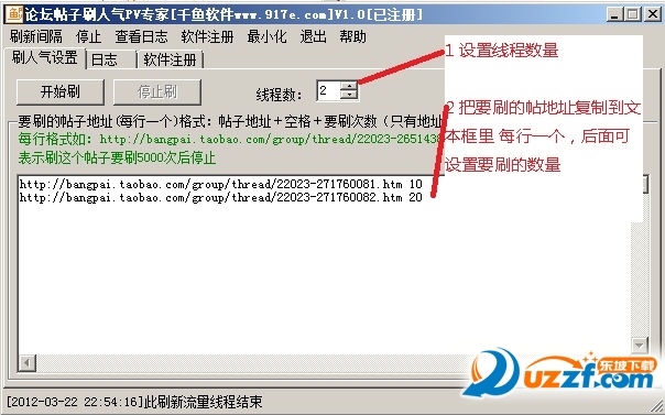 设置并开始刷新:设置线程数量...按格式输入要刷的地址每行一个
