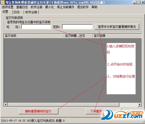 可以自动读取并分析该店铺重复铺货情况(重复的宝贝只保留交易量最大的那个),并可对重复铺货的宝贝进行批量下架或批量删除处理,防止因重复上架相同的宝贝而被扣分/降权,甚至被封店铺,对于商品数量多的店主来说是必不可少的工具哦,可以大大节约掌柜的工作量。