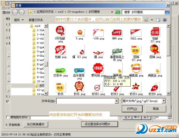 V1.4起可打图片水印,并内置51个精美水印,也可以自己到网上找更好看的水印来打。