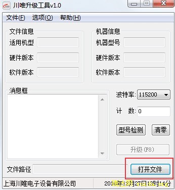 4、单击“打开文件”,选择刚才下载的相应型号的升级文件。
