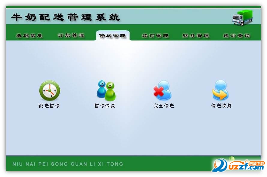 3、停送管理:配送暂停、暂停恢复、完全停送、停送恢复;