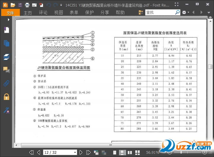 屋面保温JY硬泡聚氨酯复合板厚度选用表 11