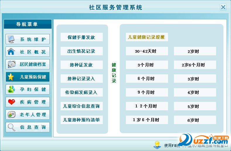 3:儿童预防保健、儿童不同年龄段的健康情况记录、疫苗接种情况、传染病发病录入、儿童接种预约清单打印);