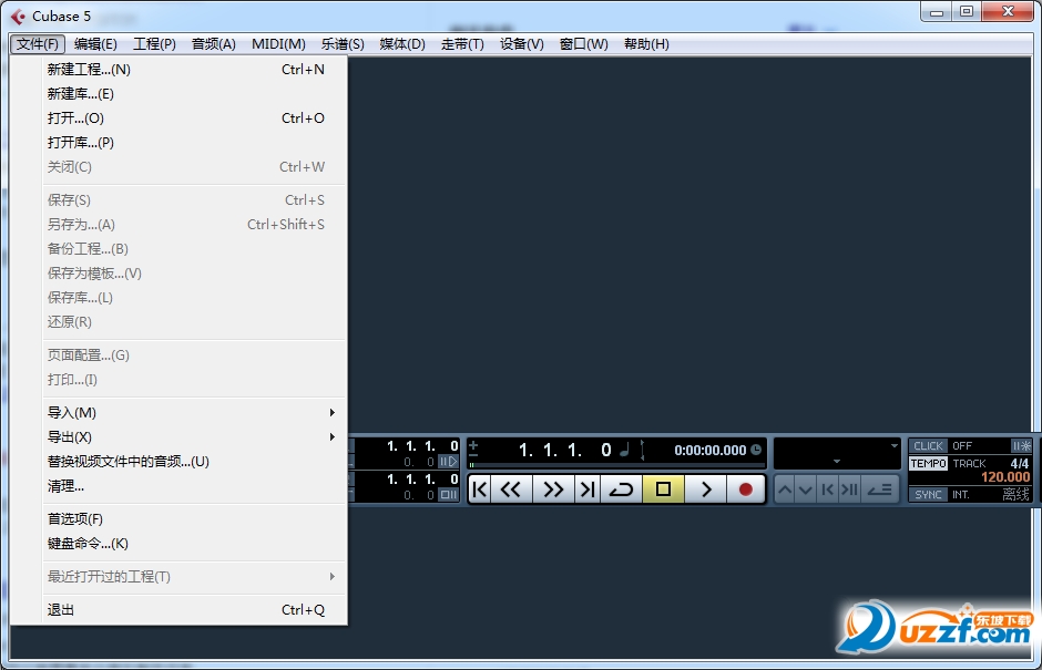 如图:这就是汉化版的Cubase5界面了,非常简单、方便(小编是音乐白痴,所以就不演示软件怎么用了)