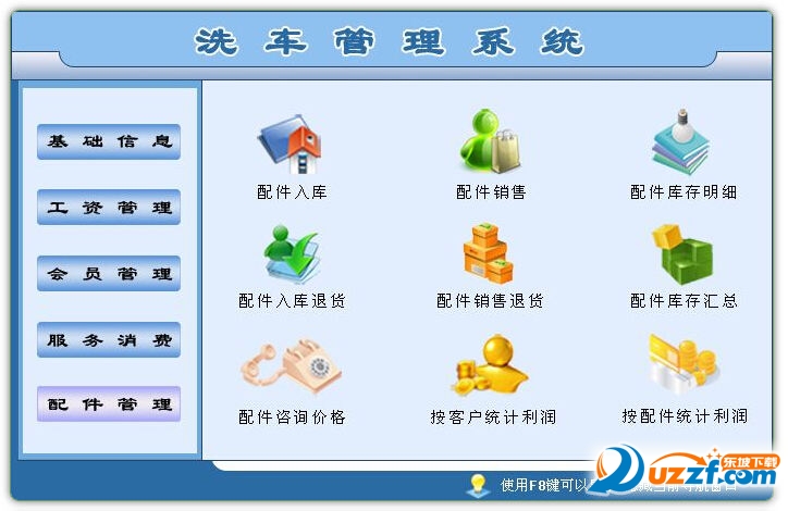 5.配件管理:配件入库,配件入库退货,配件咨询价格,配件销售,配件销售退货,按客户统计利润,按配件统计利润,配件库存明细,配件库存汇总)。