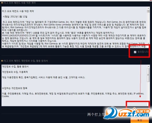 第五步、改版后,LOL韩服注册需要手机认证,黄色的两个框框 最后记得勾上啊。