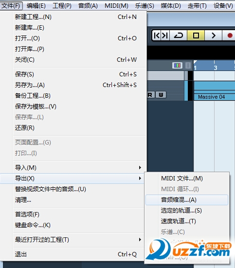 2、然后选中右上角的“文件”“导出”“音频缩混”