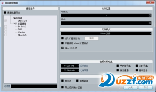 3、在这个栏里可以设置文件名,导出路径,导出文件的类型,以及各种参数,注意下,采样速率和比特深度过高的话输出文件会很大,而且转化过程会很慢,最好不要进行任何操作,而且输出的硬盘最好大一些