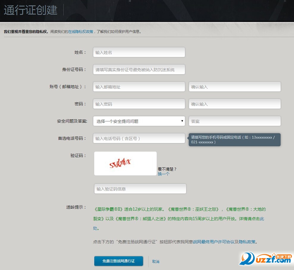 没有战网账号的玩家选择注册一个战网通行证即可。