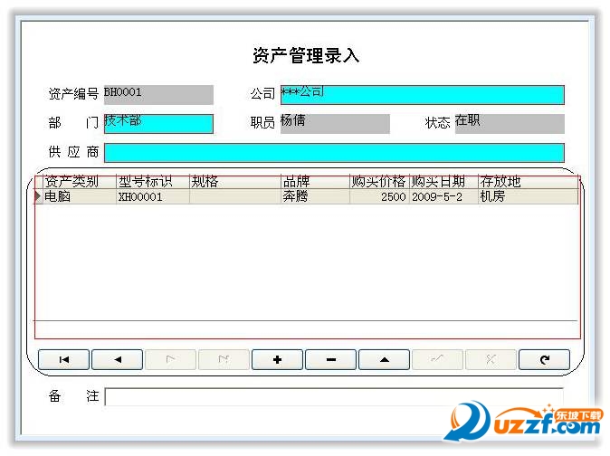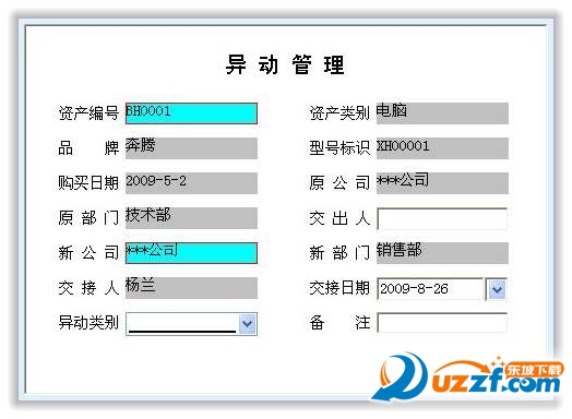 4.资产异动,录入资产编号,记录需调入资产的信息;