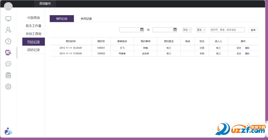 功能模块攘括:工作台、患者管理、预约管理、收费管理、库存管理、病历管理、外加工管理、员工管理、排班管理、系统管理。只要联网随时随地都可以与手机、电脑结合,一体化办公,简单易用,操作方便快捷。