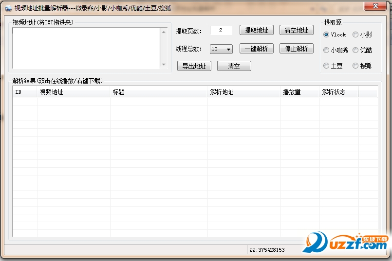 视频地址批量解析器是一款支持微录客/小影/秒拍/优酷/土豆/搜狐等多种主流视频播放器的免费下载地址解析工具