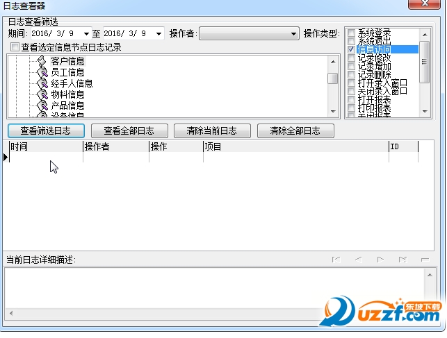 可在日志查看器中查看日志记录信息,在主窗口,通过菜单:工具→日志查看器可以打开日志查看器窗口