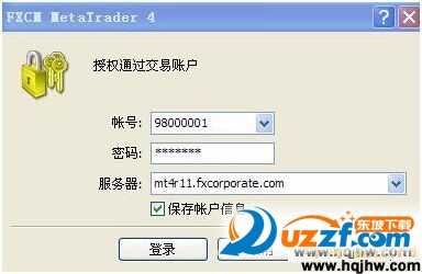 实际的方法,我们距离来说,在MT4软件上输入用户名98000001,输入密码之后,对应的FXCM服务器应该是FXCM-USDReal05,对应的下载地址为mt4r11.fxcorporate.com,如图所示: