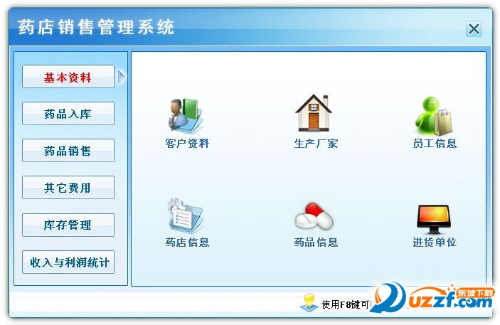1.基本资料(客户资料、生产厂家、员工信息、药品信息、进货单位、药店信息);