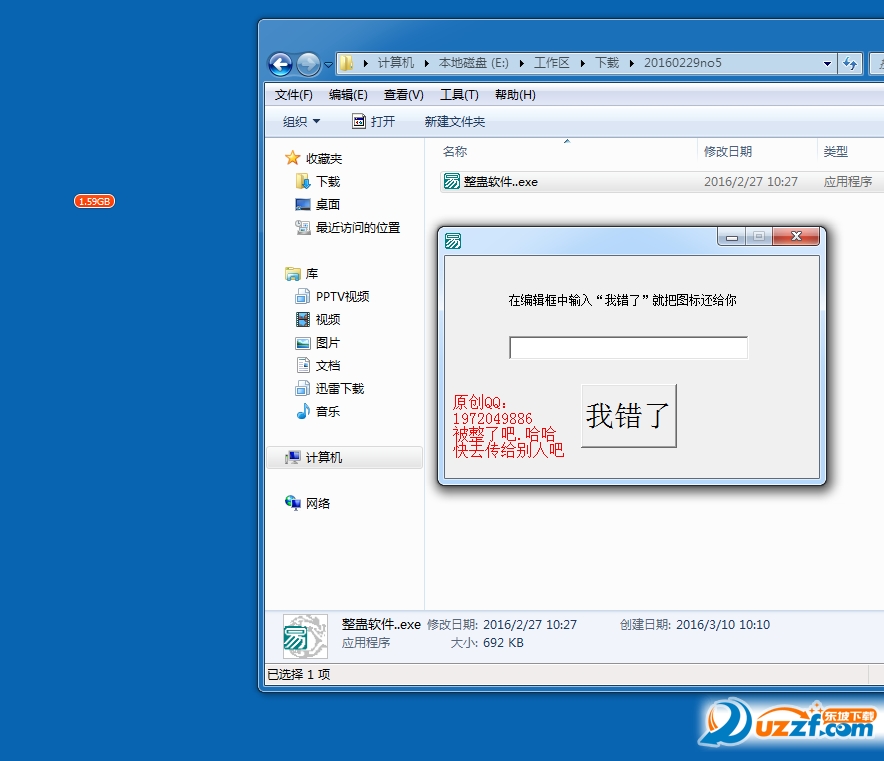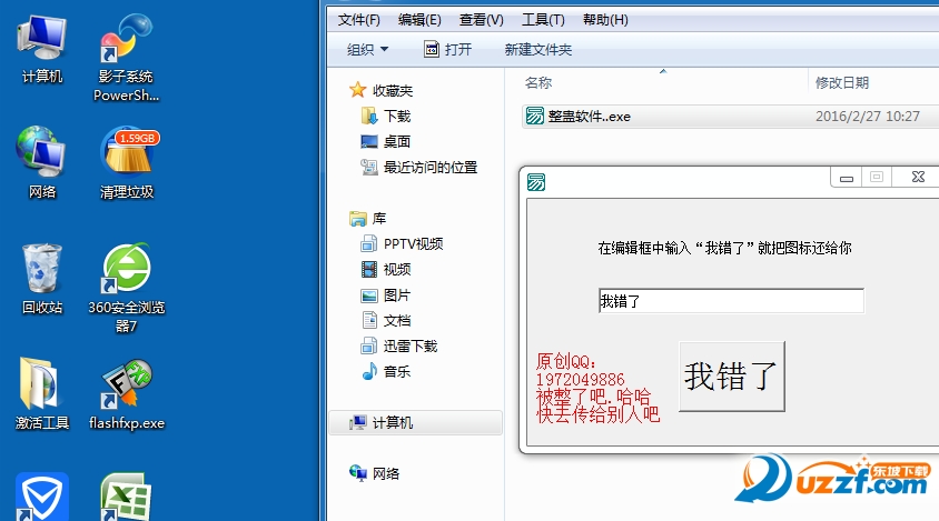 2、在输入框输入"我错了",桌面图标恢复显示,否则不显示!
