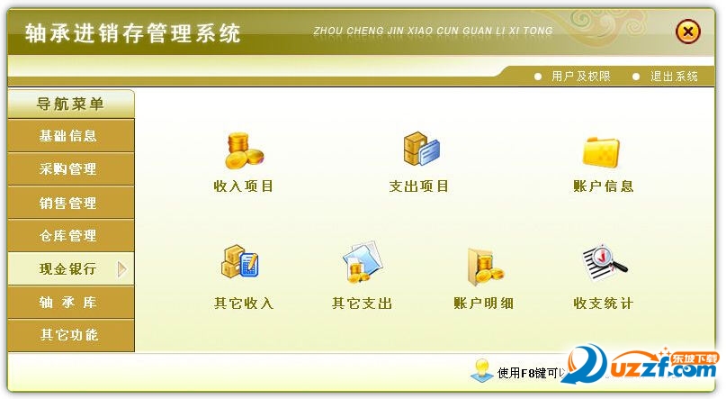 5.现金银行(收入项目、支出项目、账户信息、其它收入、其它支出、账户明细、财务收支统计);