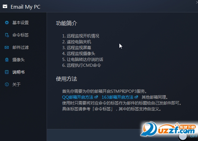 1.给邮箱发送标题为 #shutdown 的邮件即可远程关机;