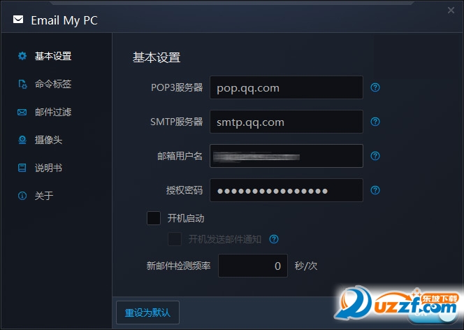 1.首先,如果你打算长期使用 Email My PC,建议注册一个专用的邮箱,这样不会跟日常的邮件混乱了,设置电脑「接收邮箱」的 POP3 / SMTP 登录信息 (国内推荐使用 QQ 邮箱或163);