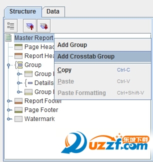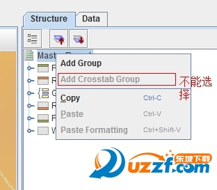 4、在右边窗口Master Report右键,可以发现交叉表功能【Add Crosstab Group】可以使用了