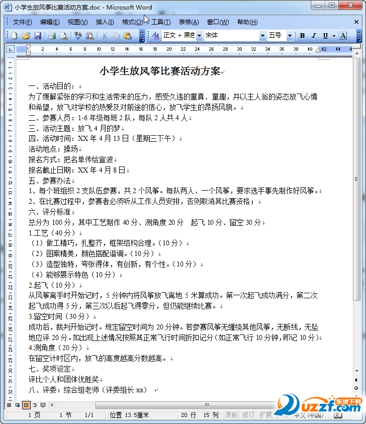 小学生放风筝比赛活动方案预览