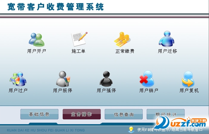 2.业务操作:用户开户、施工单、正常缴费、用户迁移、用户过户、用户报停、用户强停、用户销户、用户复机;