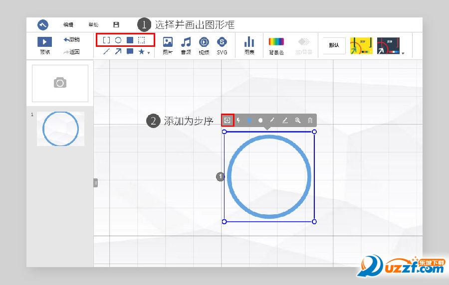 方法一:可以先画一个图形框,将内容放在里面,选择图形框点击上方的“添加步序”按钮,即可将图形框添加为步序;