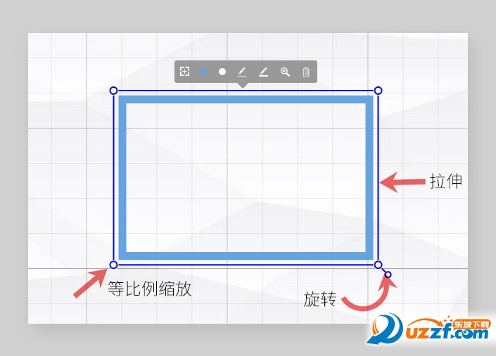点击选择要使用图形,在画布上画出,选择图形进入编辑状态;