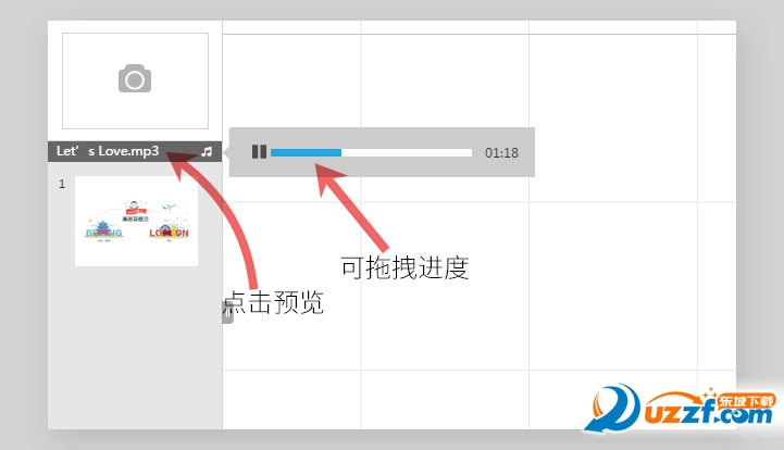 背景音乐添加好后会在步序上显示,点击可以播放预览;