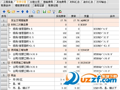 2、取费设置:软件提供“取费设置”专用界面,只需在“取费设置”界面输入相应的费率,即可应用到“单项工程”或“单位工程”
