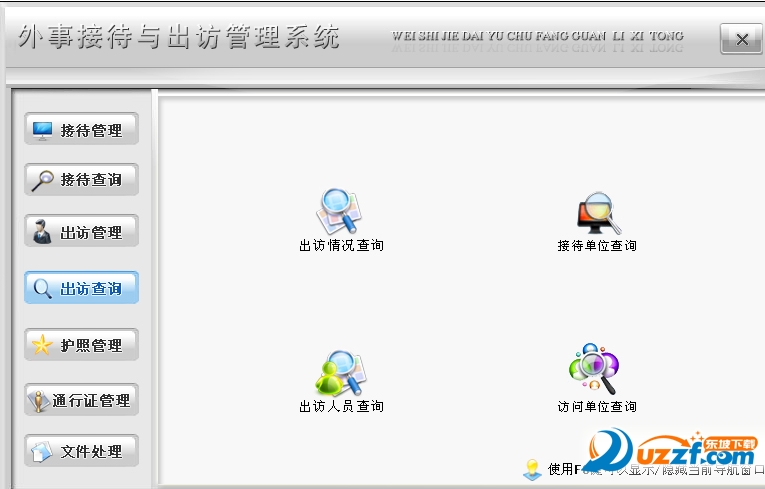 4.出访查询(出访情况查询、接待单位查询、出访人员查询、访问单位查询);