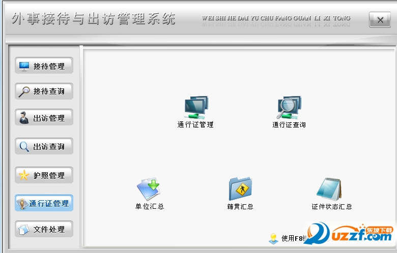 6.通行证管理(通行证管理、通行证查询、籍贯汇总、单位汇总、证件状态汇总)。
