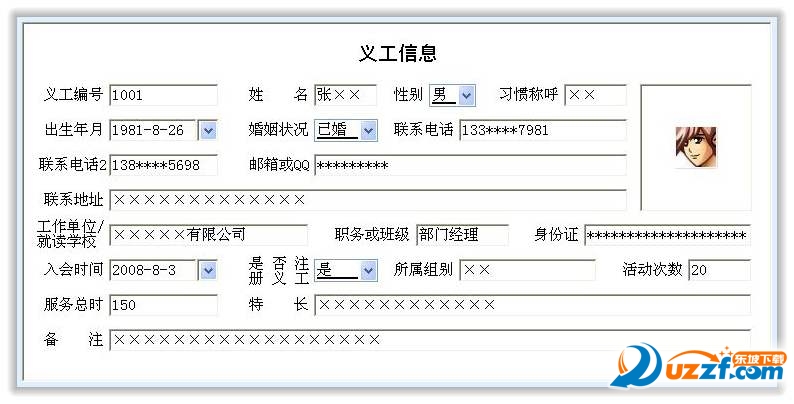 义工信息管理系统主要内容