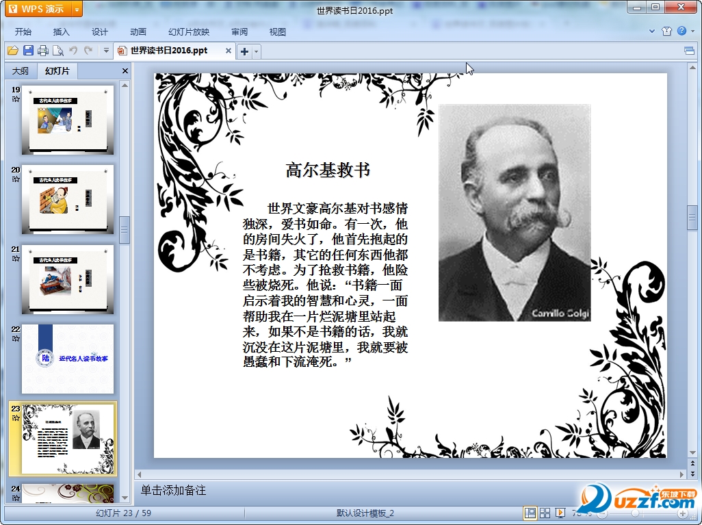 这是我们东坡下载为大家带来的一篇精美的世界读书日ppt模板,内容完整丰富,大量的世界读书日图片加上世界读书日的由来介绍,对这篇世界读书日ppt感兴趣的朋友们可以来我们东坡免费的下载使用!