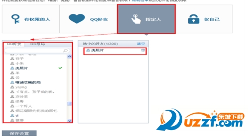 4、第三种权限设置很特别,我们可以自己选择好友对空间内容回复、评论和留言。一旦设置保存就只有选中的好友才有对空间内容回复、评论和留言的权限。