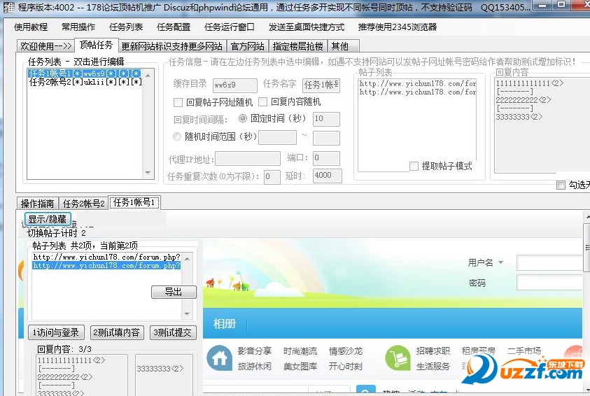 3、新建不同的任务 ,可以登录不同的帐号进行顶帖。